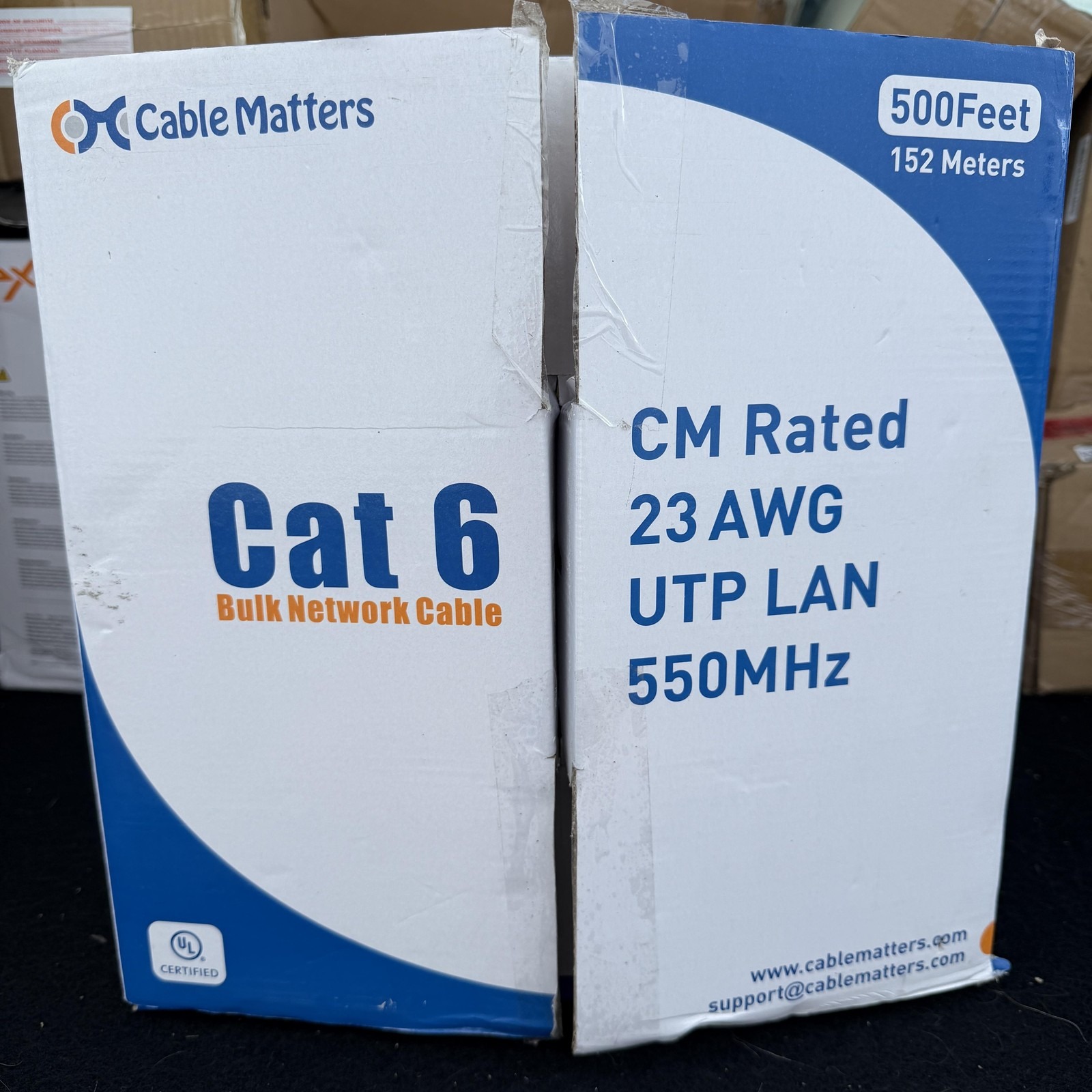 Item: Cat6 bulk Ethernet/network cable, UTP, solid bare copper conductors