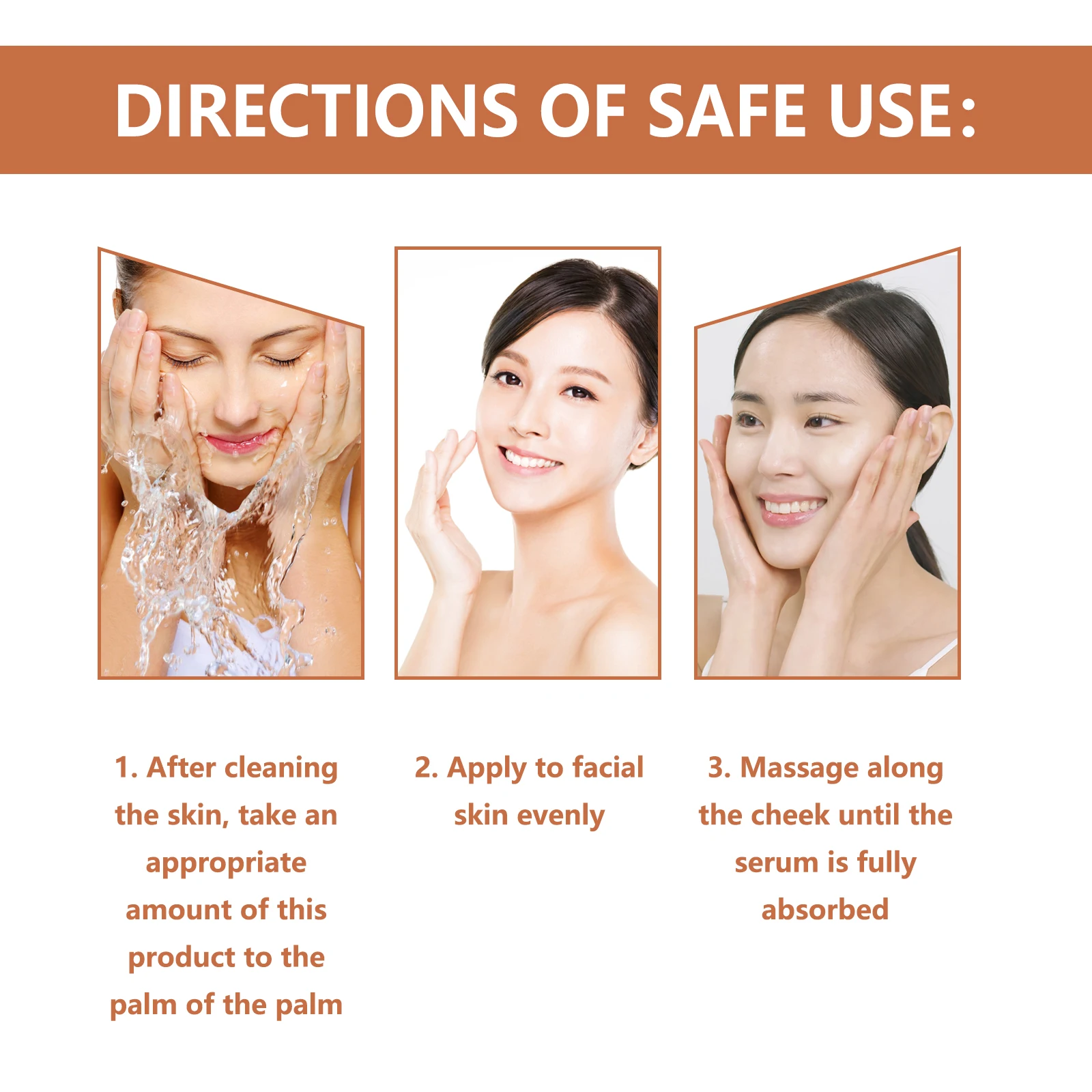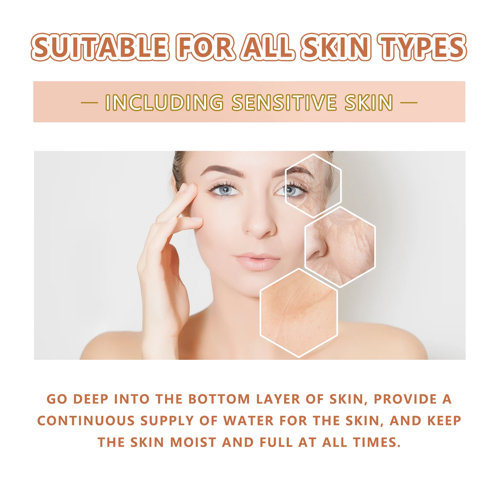 Our hyaluronic acid facial essence contains hyaluronic acid, hydrolyzed collagen and arbutin. It can reduce wrinkles and fine lines, slow down skin aging, make the skin look younger, improve uneven skin tone, make the skin more even and bright, deeply nourish the skin, increase skin moisture content, and maintain skin hydration. Its application method is very simple: after cleaning the skin, take a proper amount of this product on the palm, evenly smear it on the facial skin, massage along the cheeks until the essence is completely absorbed. It can penetrate deep into the skin and provide a continuous supply of moisture, keeping the skin hydrated and plump at all times.