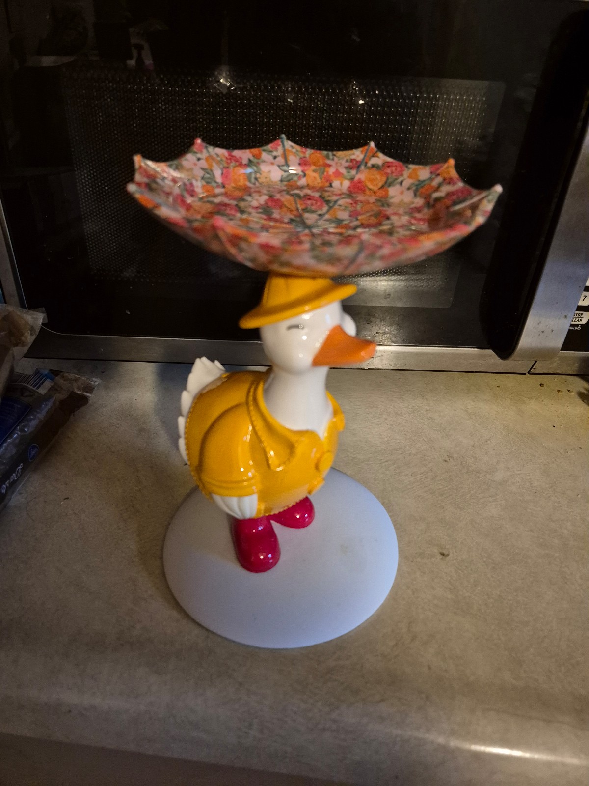 NEW Bath & Body Works Silly Goose / Duck with Raincoat and Umbrella 3-Wick Candle Pedestal holder .