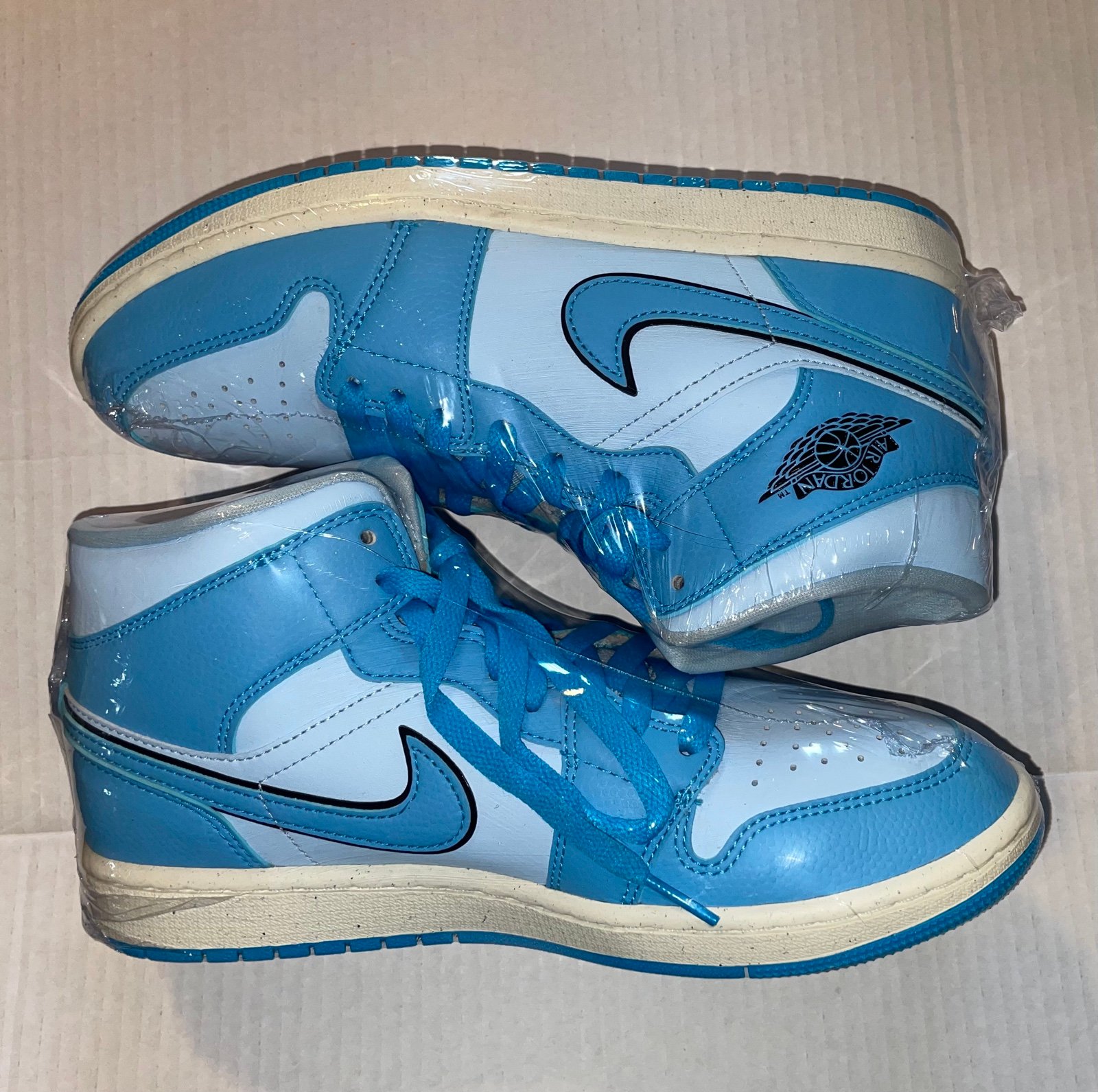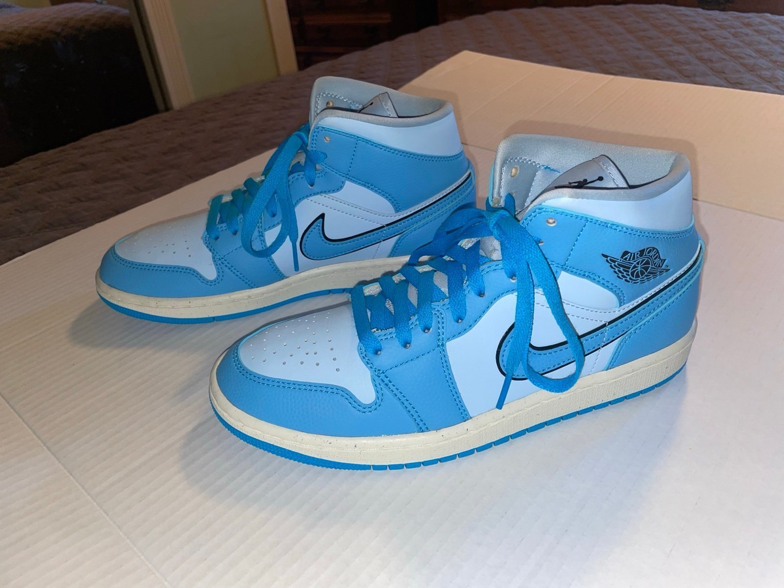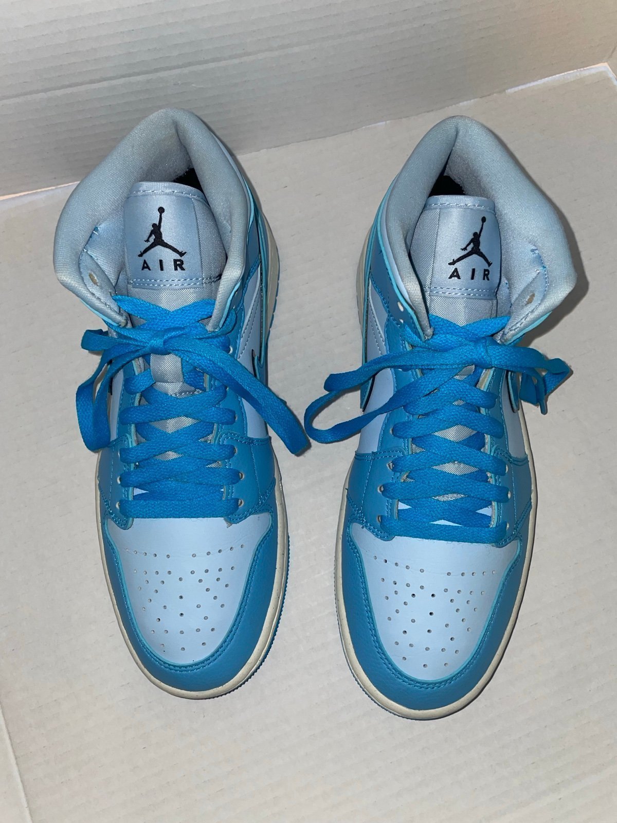 Hi! I recently bought out a large auction and will be posting new items daily — be sure to check back often for great finds. Today’s item is a pair of men’s Jordan 1 Mid SE ‘Ice Blue’ size 9.5 sneakers. They are in great shape and would look great on you! These are a great pair of clean gently used kicks! They have been shrink wrapped and they include shoe tree’s inside them!